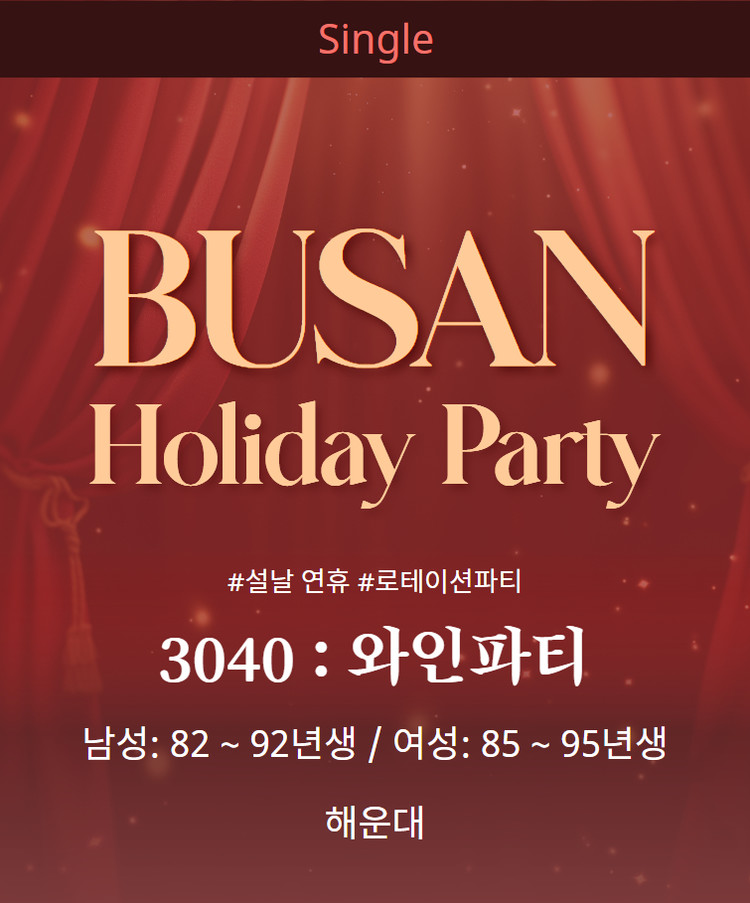 법적 싱글인 남녀 회원만 참석 가능합니다. (돌싱 참가 불가)